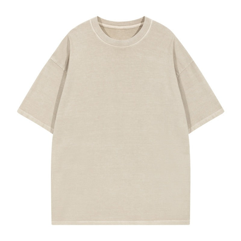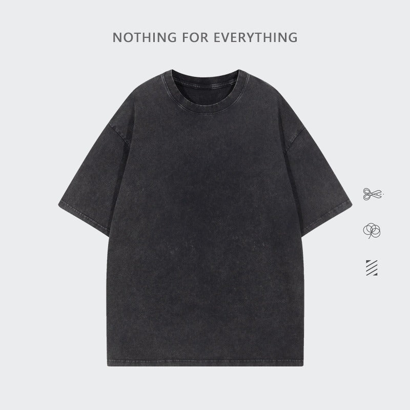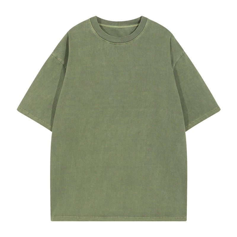 260G Pure Cotton Washed Old Short Sleeved Mens T Shirt Retro Fried Snowflake Mens and Womens Breathable Bottom Shirt
