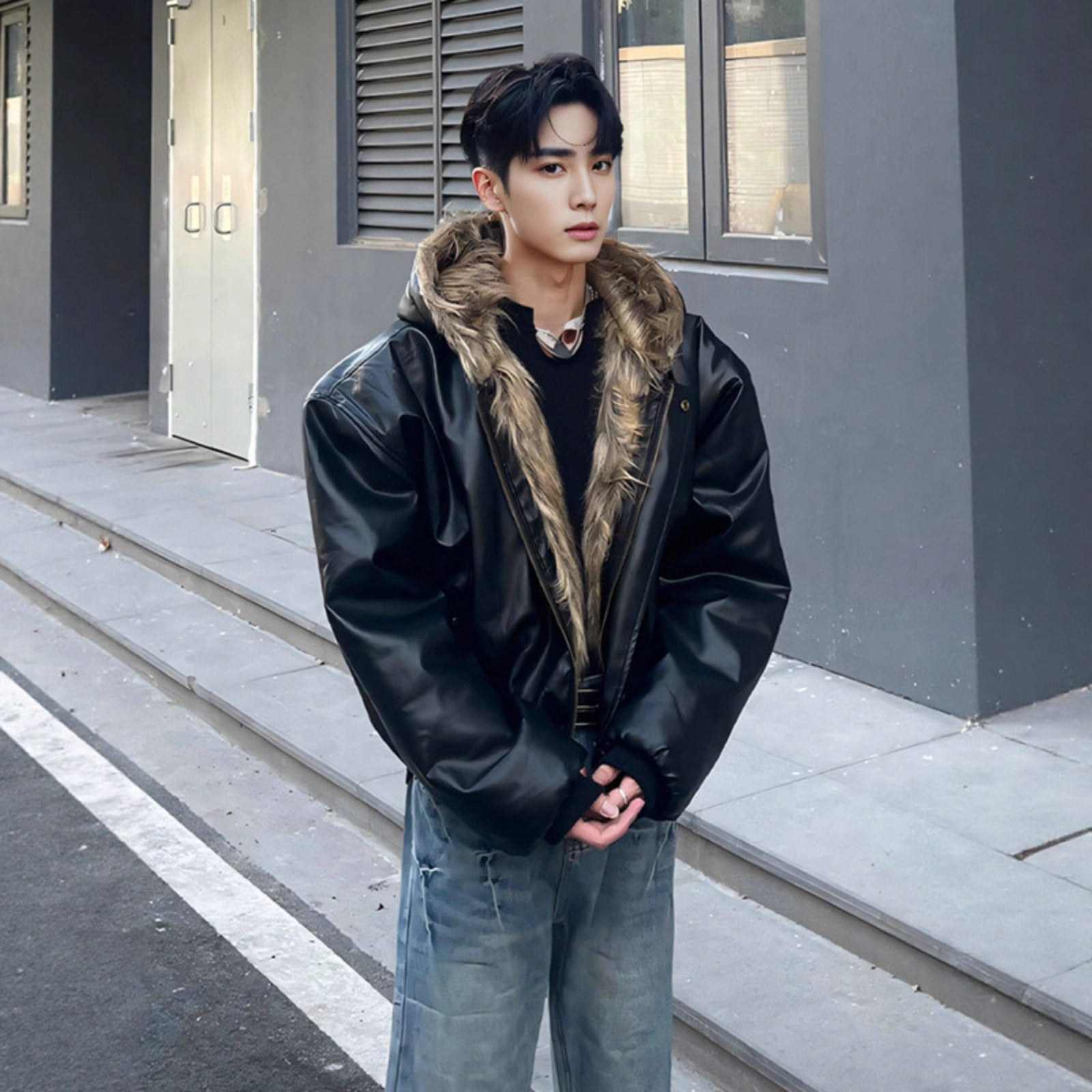 Retro Hooded Faux Fur Jacket